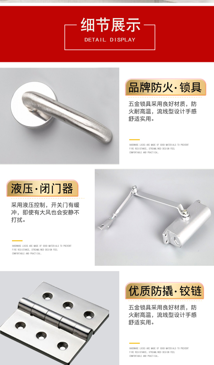 鋼質(zhì)防火門是指用鋼質(zhì)材料制作門框、門扇骨架和門扇面板,門扇內(nèi)若填充材料,則填充對人體無毒無害的防火隔熱材料,并配以防火五金配件所組成的具有一是指定耐火性能的門。鋼質(zhì)防火門和木質(zhì)防火門在安裝方法上有一些細(xì)節(jié)上的不同。從防火等級上也略有不同大家在安裝的時候一定要注意細(xì)節(jié)。 首先,木質(zhì)防火門在安裝時,門框尺寸應(yīng)小于洞口20mm,門框下腳埋入地面下20mm。門框應(yīng)與墻體固定牢固,垂直通角。立樘,撐樘應(yīng)嚴(yán)加注意平直同角,避免刨鋸。門框兩側(cè)固定點不少于3個,間距最好不要大于800mm。 其次,鋼制防火門在安裝過程中,考慮到門框的彎曲變形這個問題,要在門框?qū)挾确较蛴媚捐手纹饋?,門框下腳埋入地面下20mm,再將門框與墻體上的預(yù)埋件焊接。然后在門框上角的墻上開洞,灌注水泥、砂、膨脹珍珠巖(1:2:5)的混凝土,等混凝土凝固后就可以使用。