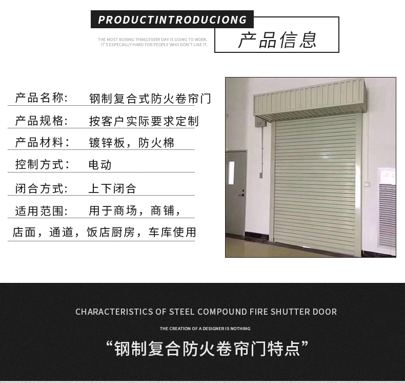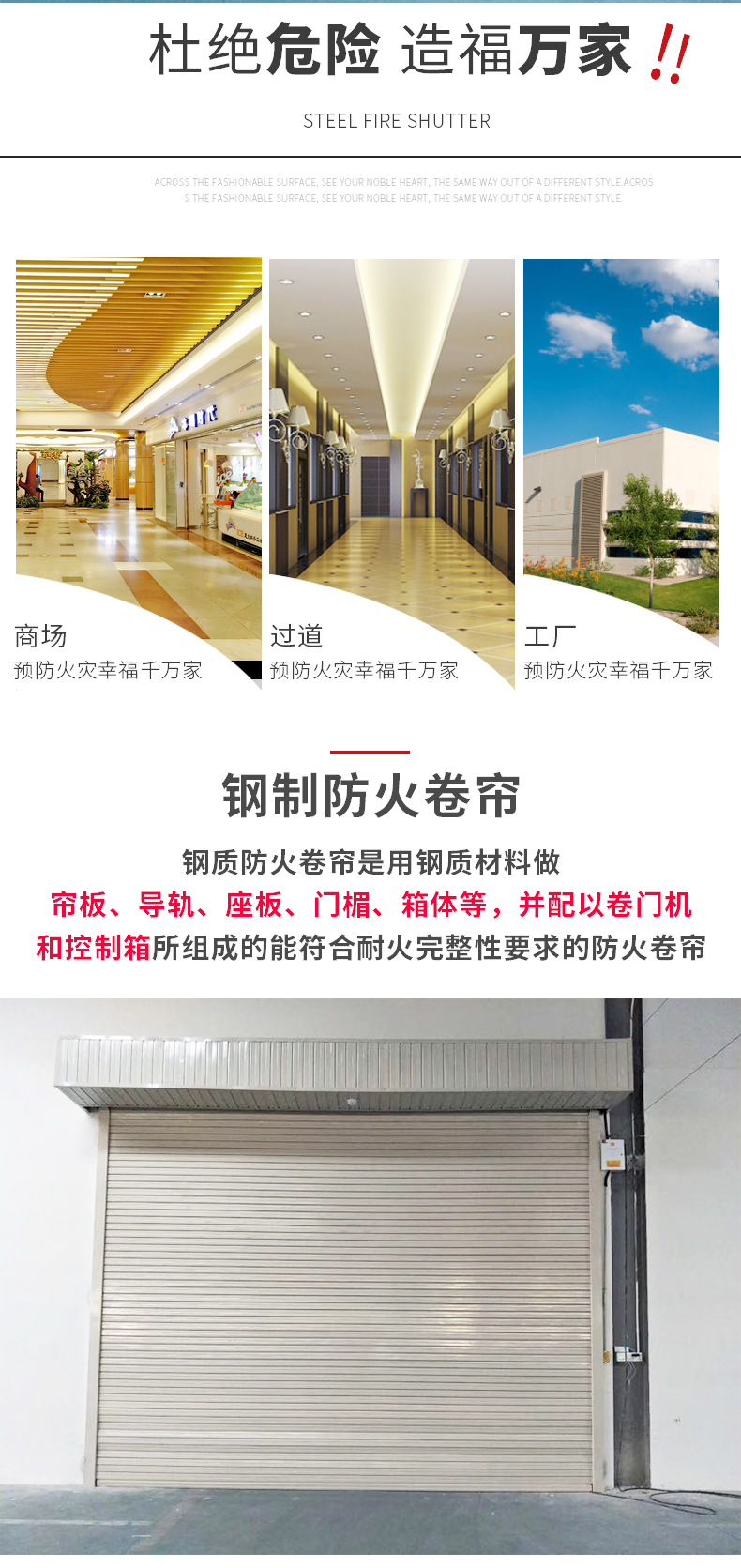 防火卷簾門是一種適用于建筑物較大洞口處的防火、隔熱設施,產(chǎn)品在設計安裝上起到了一定的作用技術。防火卷簾門廣泛應用于工業(yè)與民用建筑的防火隔斷區(qū),能有效地阻止火勢蔓延,保障生命財產(chǎn)安全,是現(xiàn)代建筑中不可或缺的防火設施。